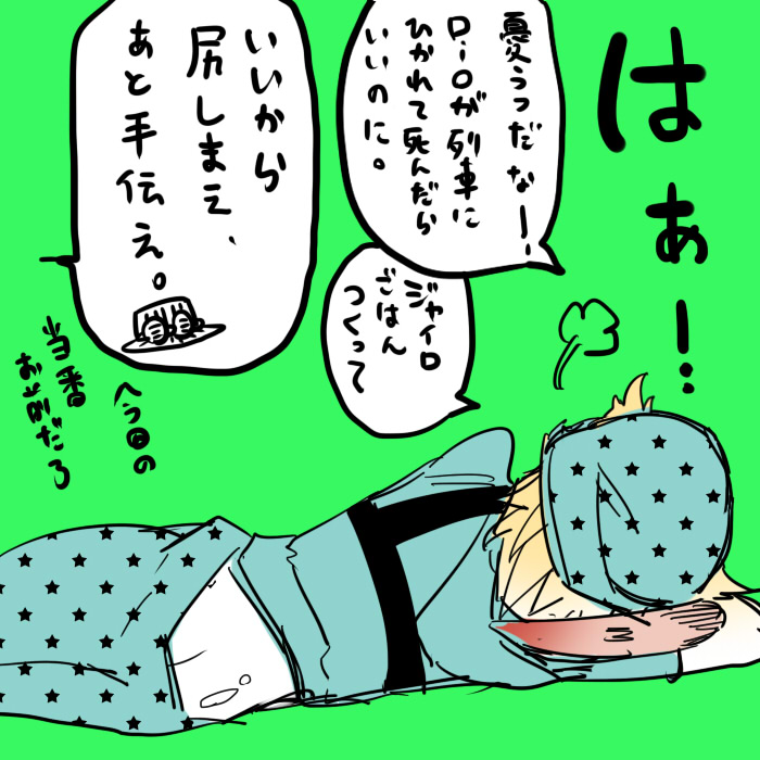 お約束臭がプンプンしますが2コマ目で1部ネタを再現する息子達が描けて満足(^∪^)