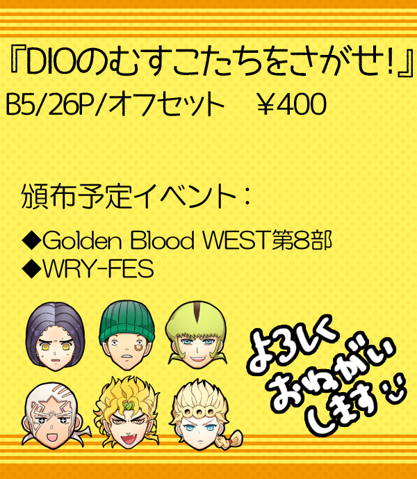 内容:各部のディオが集結し て打倒ジョースターを掲げながらがんばるお話です(歴代ディオ本)
